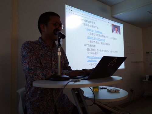 ブラウザで動く愉快なページを作るというのはライフワークにしているのだけど、最近はそれを曲に合わせて動くようにして、人前で発表するという形でブラウザでVJ活動していた。 それを見てtakawoさんから声をかけていただいて、甲南女子大学でワークショップ…