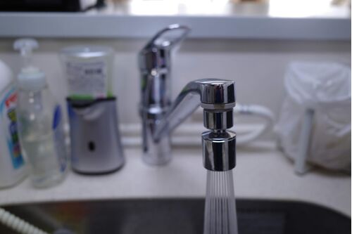 新居のキッチンの蛇口(TOTOのTKGG31E)が、水がダーッと出るスタイルで、スプーンを洗うと水がめちゃくちゃに跳ねる。 また、ホースが伸びたりもしないので、シンクに落ちたゴミなんかを流しにくい。 蛇口の先端に切替器をつけることで、通常の水とシャワー…
