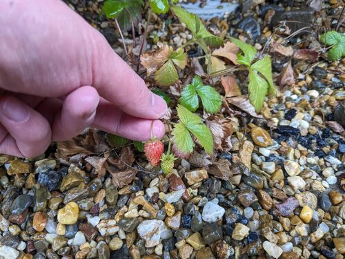 ワイルドストロベリーの実がなった。 4株くらい植えて、2株は夏に引退し、今は1.5株くらいになっているもの。 この季節にできると思ってなかったので予想を裏切られている。 しばらく放置してたら急に成長していたので、水をやればいいのか、やらないのがい…