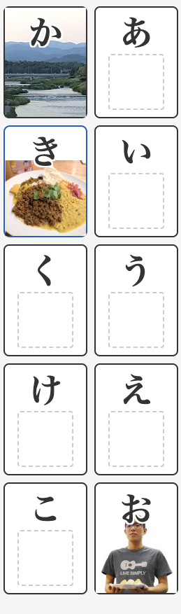 子といっしょに一文字ずつ、好きな絵を設定できたら学習に役立つだろうと思って、ブラウザ上で五十音表に好きな画像を設定できるツールをAIと作った。